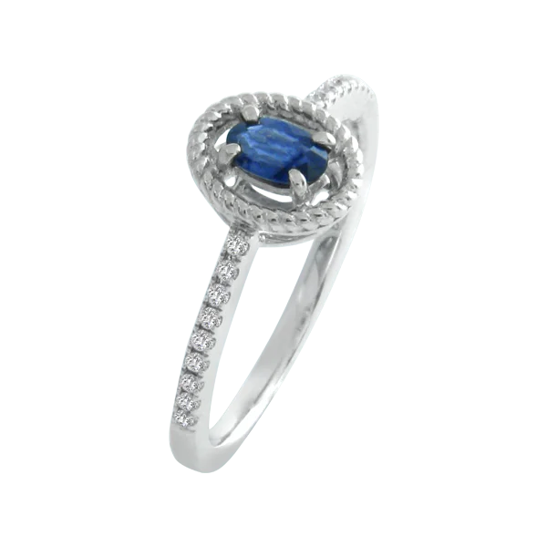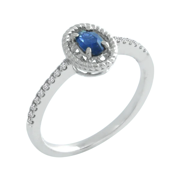 Looking for something simple? If your color is blue, and your budget is in the red, this 14k white gold ring has a sapphire weighing nearly .25 carats and .1 carats in diamonds. As tiny as this treasure is, the 20 diamonds keep it sparkling at all angles. Compare at $1,999.00