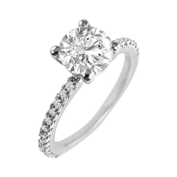 This ring is a WOW Factor! With a 1.43 carat diamond in the center, this ring is of true luxury. This center diamond is both SI in clarity and H in color. The twenty-six side diamonds are H in color and SI in clarity. Part of our “I Said Yes!” collection, this ring will make for the perfect engagement. Set in 18k white gold. Please call us if you need any alterations made to this piece.