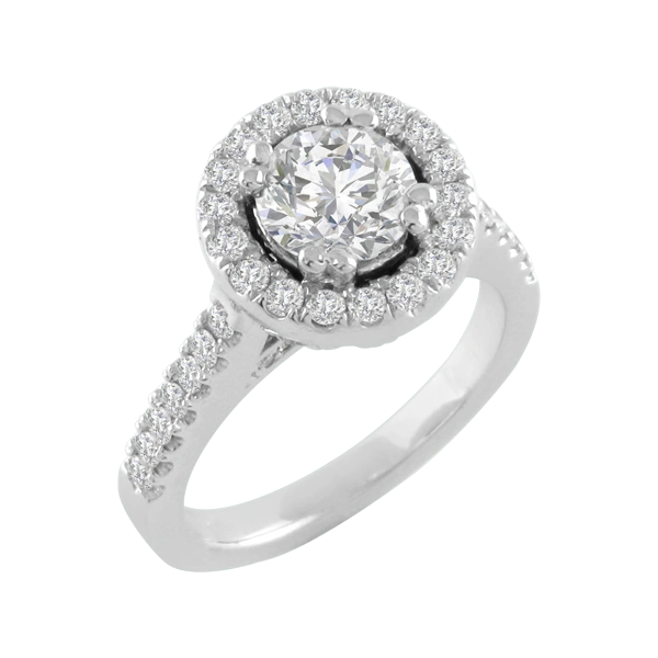 If she said yes, it means she likes your style. Don`t disappoint her. The center stone in this ring is a full one carat diamond surrounded by fifty-six diamonds that total .78 carats of diamonds. The ring is set in 18k white gold, and your style will be on display forever. Compare at $39,749.00 Please call us if you need alterations not offered here.