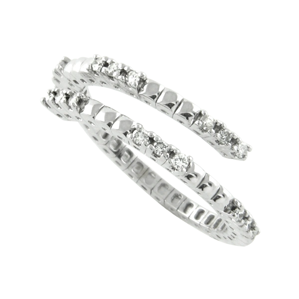 From our Italy collection, this beautiful diamond coil ring contains eighteen H in color and SI in clarity diamonds that total .3 carats. This ring is designed to draw eyes. With diamonds at every angle, you will be the bell of the ball with this ring on your finger. Set in 18K white gold. Compare at $2,999.00 Please call us if you need an alteration not offered here.