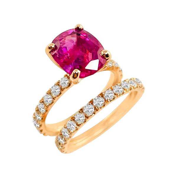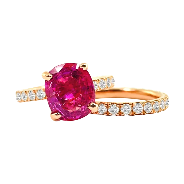 Diamond Pink Sapphire Engagement Set set in 18k rose gold