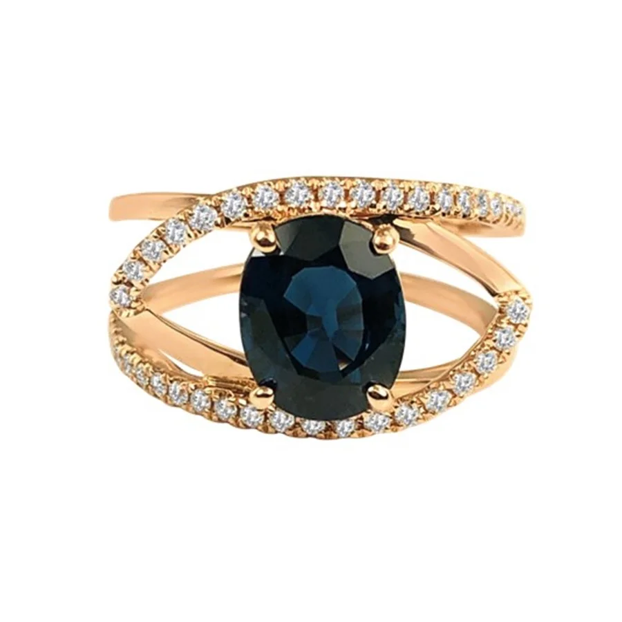 As Sylvester Stallone proved in his Rocky series, all you need is “The Eye of the Tiger!” A magnificent sapphire that is 2.57 carats is the center of this cutting-edge eye design that shows how wondrous and empowering jewelry can make you feel. With forty H in color and SI in clarity diamonds, this ring gives you all the reasons to shoot for the stars! Set in 14k rose gold. Compare at $14,999.00