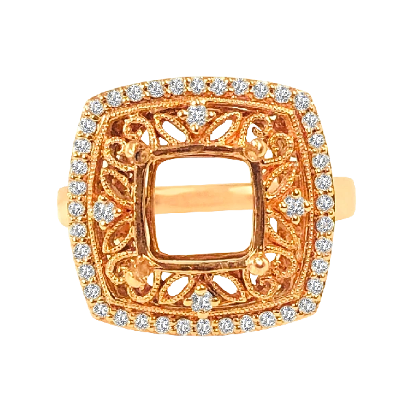 The best part about semi-mounts are that it is almost a “build your own jewelry” piece. Have a stone that your grandma gave you? You could put it in a ring, necklace, bracelet– whatever your heart desires! There are forty diamonds that are H in color and SI in clarity which are .33 carats total. The dimensions are 8X8MM. Set in 14k rose gold. Compare at $3,999.00 Please call us if you need an alteration not offered here.