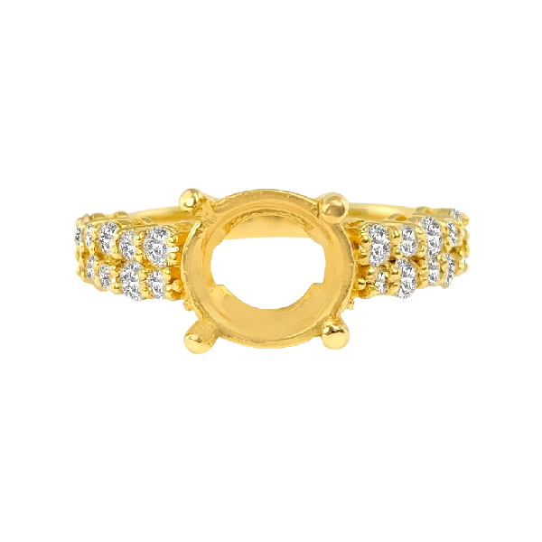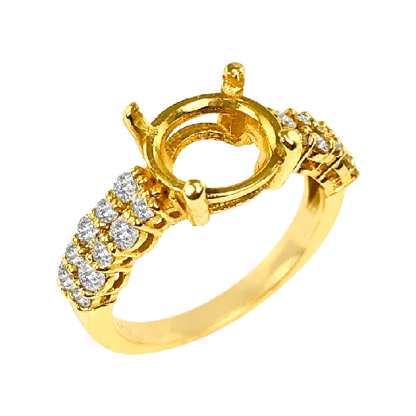 The best part about semi-mounts are that it is almost a “build your own jewelry” piece. Have a stone that your grandma gave you? You could put it in a ring, necklace, bracelet– whatever your heart desires! There are twenty diamonds that are H in color and SI in clarity which is .5 carats total. The dimensions are 9.5 X 9.5 millimeters. Set in 14k yellow gold. Compare at $2,499.00 Please call us if you need an alteration not offered here.
