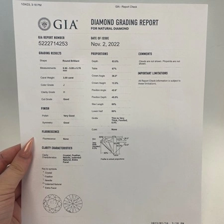 This ring is part of our New Collection which is of prime luxury. The center diamond is 3 carats which is J in color and I in clarity. This whopping stone is also GIA Certified. The side diamonds have a total carat weight of .64 carats. This ring is truly a masterpiece.