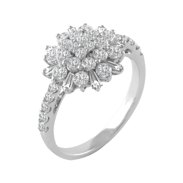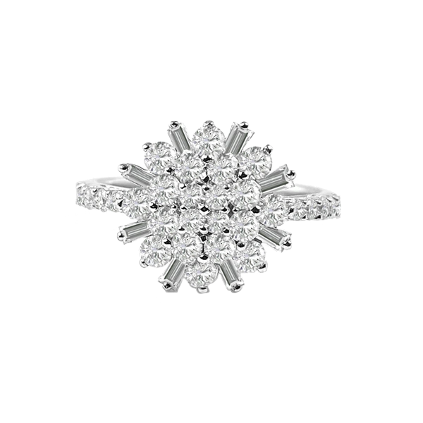 A sunburst of possibilities. This ring will guide you to the most memorable parties, and brightest of days. It will take you to the beach, to happy hour, and to the best holiday reunions. With thirty-eight diamonds that total 1.35 carats in weight, you will not leave unseen from the party. Set in 14k white gold. Compare at $7,499.00 Please call us if you need alterations not offered here.
