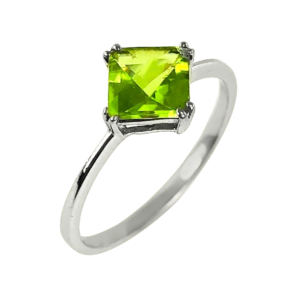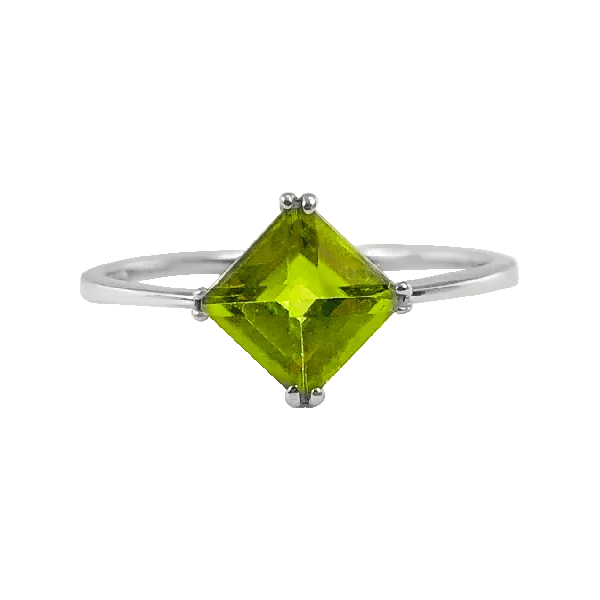 The minimalist ring. This princess-cut peridot ring is for any person who wants a simple yet stunning piece in their collection. The peridot is one carat total and is set in 14K white gold. Compare at $1,299.00
